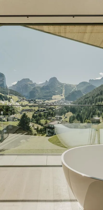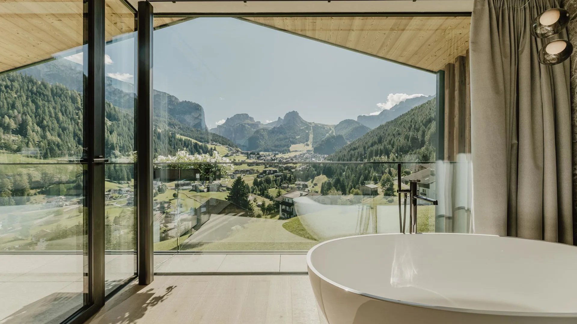 Ogni chalet si estende su due livelli, con una facciata completamente vetrata che invita lo sguardo a perdersi in un panorama sconfinato su Selva Gardena e sulle maestose montagne. Se lo si desidera, gli chalet possono essere uniti per creare un ambiente ancora più esclusivo.